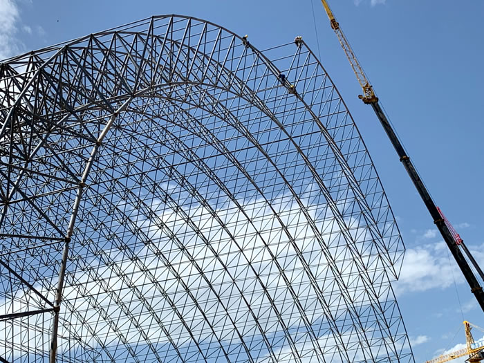 (2)网架加工前应对现场尺寸进行复测,确认无误后方可进行加工、安装;网架制作、运输、安装应遵守《空间网格结构技术规程》JGJ7-2010、《钢网架南通螺栓球节点》JG/T 10-2009、《钢网架南通螺栓球节点用高强度螺栓》 GB/T 16939-2016、《南通钢结构南通工程南通施工规范》 GB50755-2012、《南通钢结构南通工程南通施工质量验收标准》 GB50205-2020。